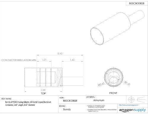 Burndy AYPO400 Hyplug Adopter, 400 kcmil Copper/Aluminum Conductor, 3.43" Length, 0.63" Diameter